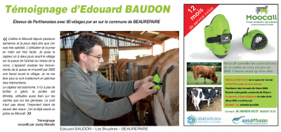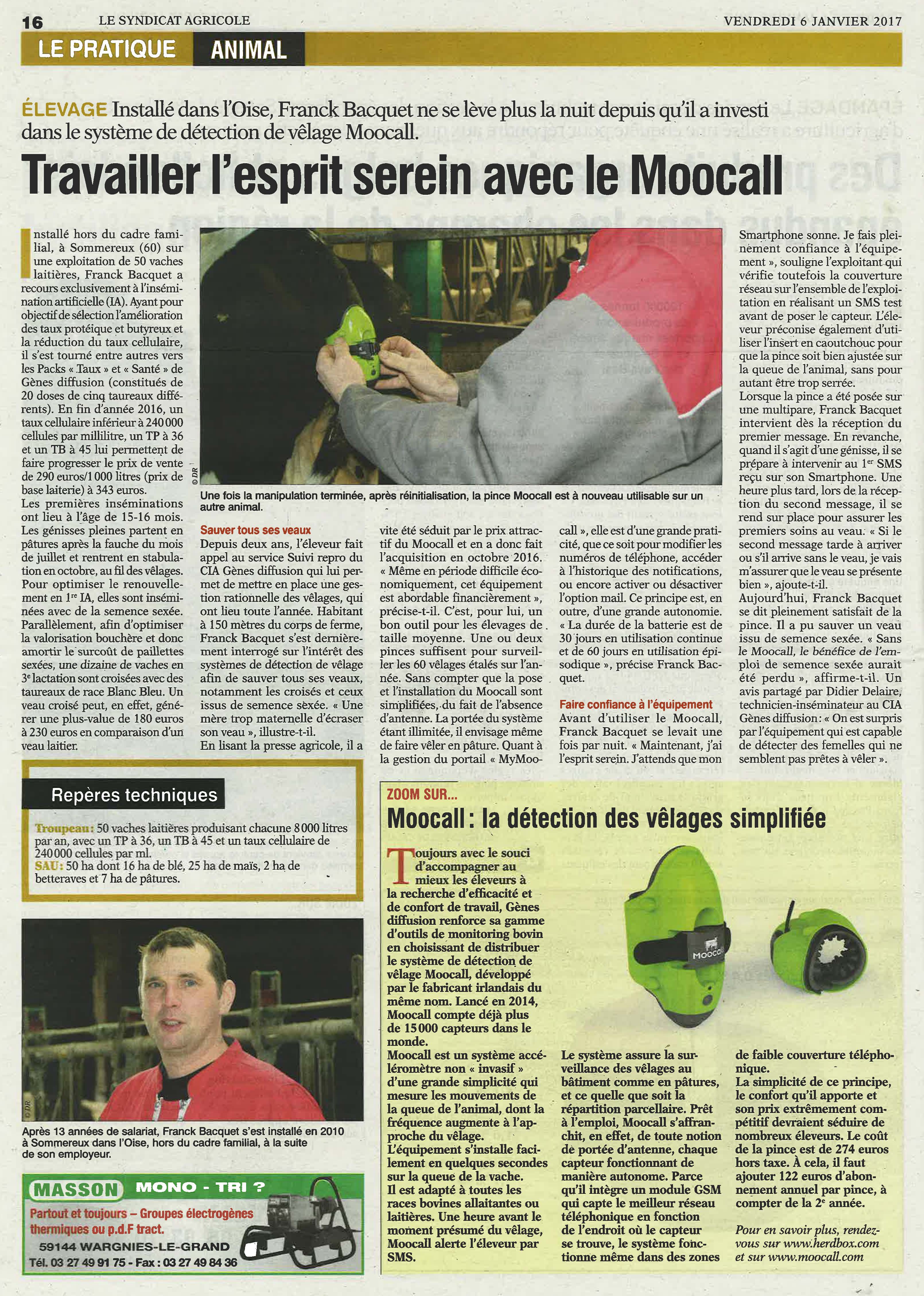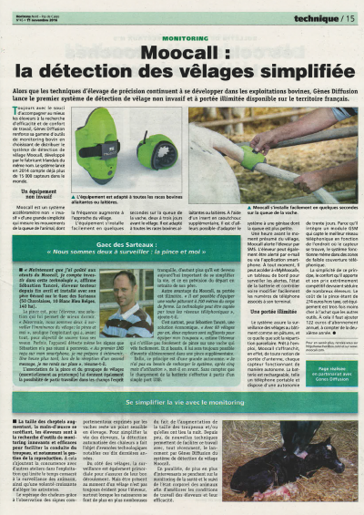 webmaster2019-03-18T08:30:42+01:00Installé dans l'Oise, Franck BACQUET ne se lève plus la nuit depuis qu'il a investi dans le système de détection de vêlage MOOCALL. La simplicité de ce principe, le confort qu'il apporte et son prix extrêmement compétitif, ont déjà séduit de nombreux éleveurs.